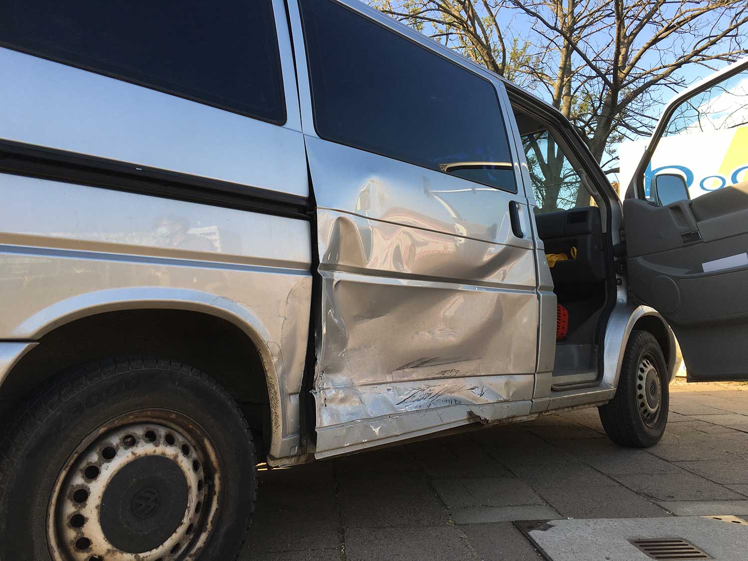 Was ist noch passiert? Heute hatte ich einen Unfall. Meinem Bus wurde durch einen Audi fahrenden Arzt auf der Kreuzung Dodendorfer Straße / Salbker Straße ein neues Design verpasst. Schiebetür vollständig verknorkelt. Ich bei Grün, er bei Rot. Keine Schuld-Diskussion, keine Verletzten. Soweit alles okay. Die Sekunden vom Bemerken, über den Crash selbst bis zum ersten Handeln danach sind die besten: Was sich in diesen ersten Sekunden alles im HirnHerz abspielt, ist sagenhaft. Der Rumms des Crashs selbst war wie im Auto-Scooter auf dem Rummel. Nichts Besonderes, vorhersehbar, unabwendbar. Ich war sehr gefasst und ruhig, fast gelangweilt. Der Herr Dr. Karsten Hellwig ebenso. Aber uns beiden ging anschließend doch ein bisschen nebenbei die Muffe (was'n das?) ob des außergewöhnlichen Ereignisses. Keine Bullen, freundliche Hilfsangebote von Umstehenden, Adressen, Fotos, Versicherungen ... alles okay. Ich wollte Döner aus der Raiffeisen holen, das war das merkwürdig wichtigere Ziel. Psychologische Ausblendung. Bisschen später kam dann die Überlegung: Huch! Mein Bus!? Kann man das reparieren? Zum Glück traf es fast perfekt die Schiebetür, welche die Problemstelle des Busses in Sachen Rost und Quietschen betraf. Aber auch ein bisschen dahinter beult sich etwas. Aber der Bus ist damit nicht tot. Und wir zwei Unfallbeteiligten auch nicht.